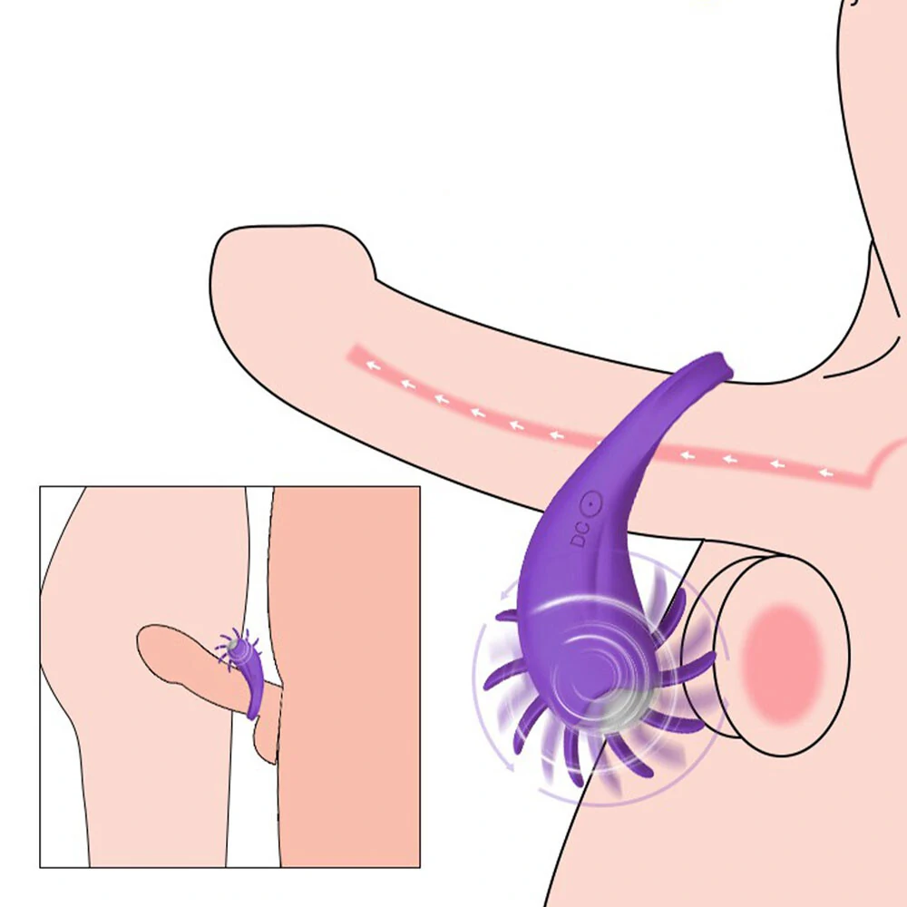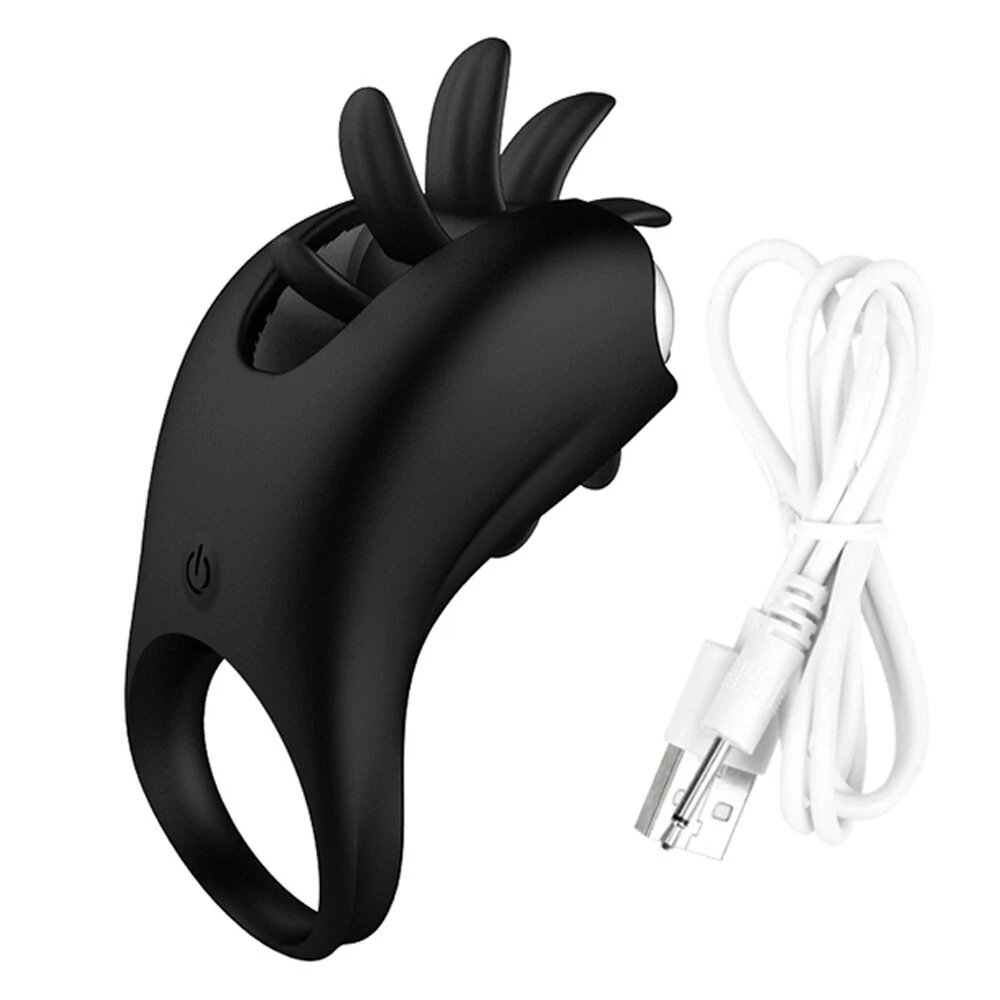 Vibrador Rotativo de Língua Oral Estimulador Clitóris . Pode ser colocado ao pênis ou prótese através do seu anel, servindo como anel peniano e estimulador de clitóris. Possui 10 modos de vibrações, resistente a água.