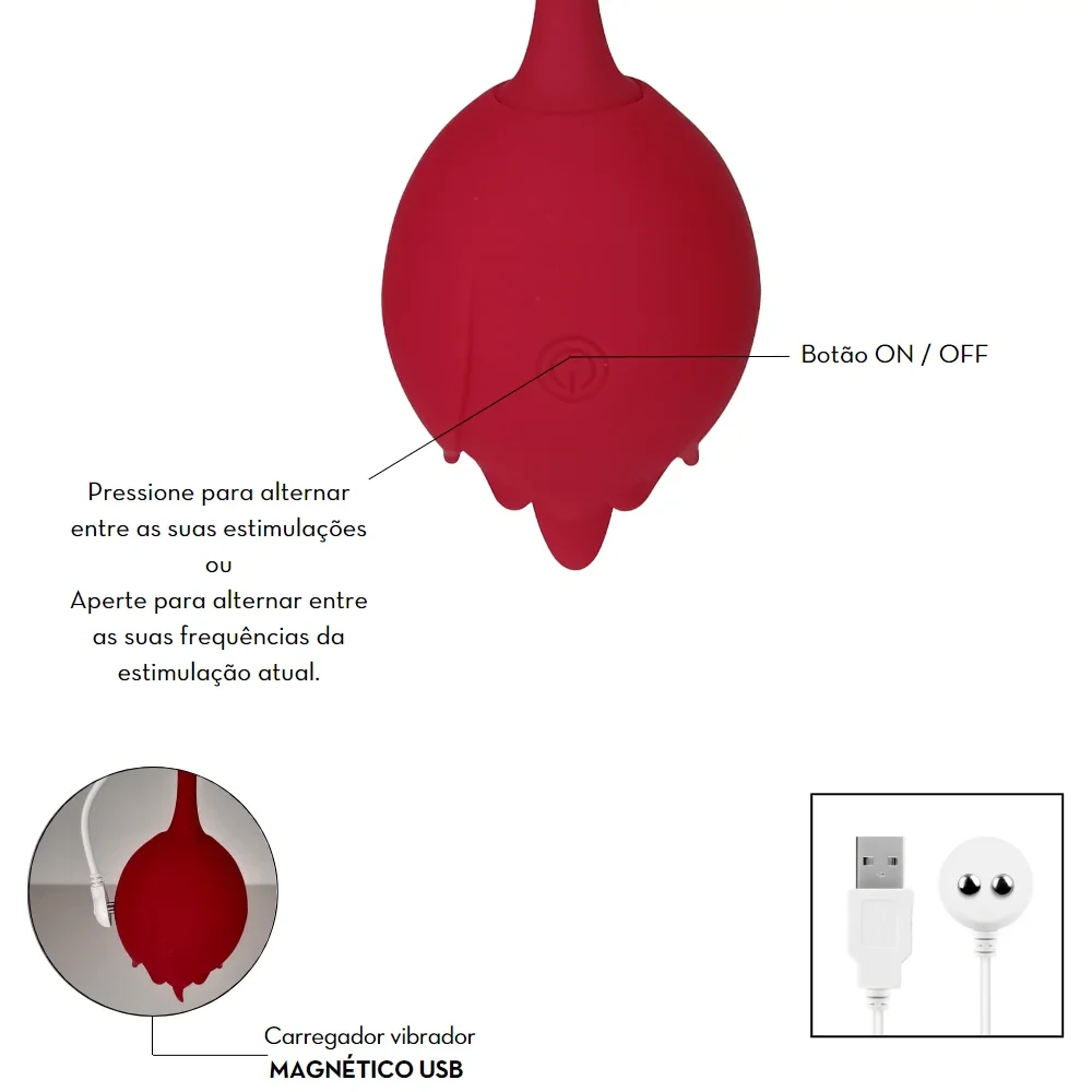 Vibrador Estimulador Clitoriano Duplo em Formato de Rosa por Aplicativo